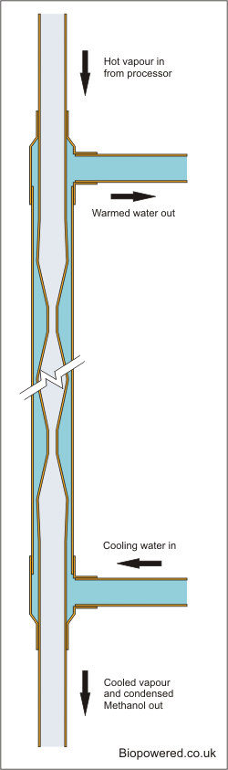 A PD condenser that is one metre long will just about keep up with a 3kW heat source when used for methanol recovery, providing the coolant water flow is adequate and is kept below 20°C.
