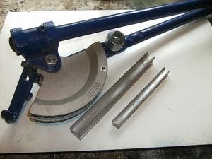 Hold the pipe against the radiused former, then insert the straight former to support the pipe then pull the levers together.