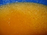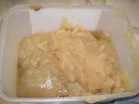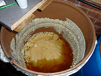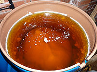 After gravity settling for a week or so, any waxes should have settled to the bottom of the batch, and liquid biodiesel can be carefully drawn from the top. Care must be taken not to stir or disturb the batch during this process, as the cream easily can flurry up into suspension.